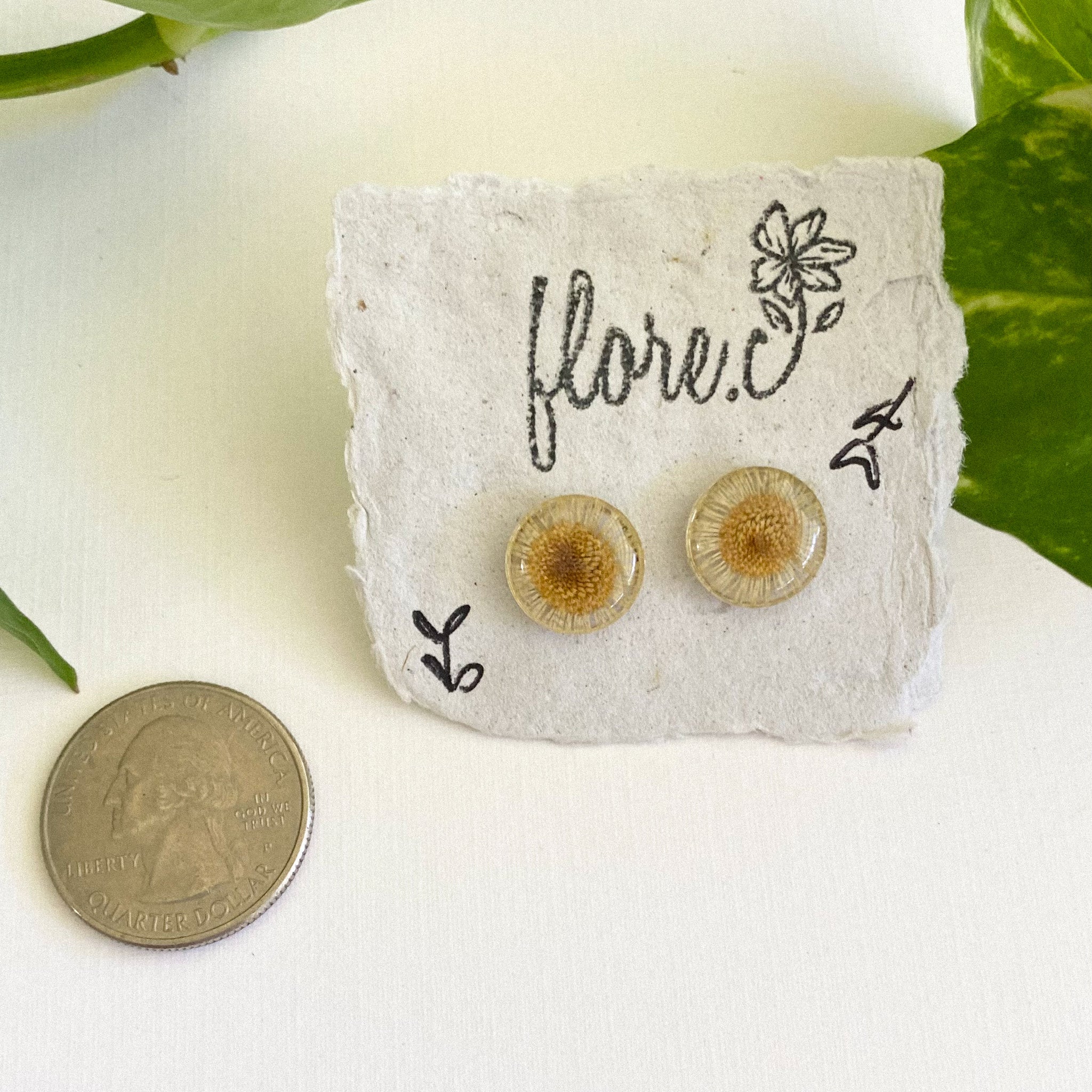Materials: resin, petals flowers , gold frame , plastic earring studs