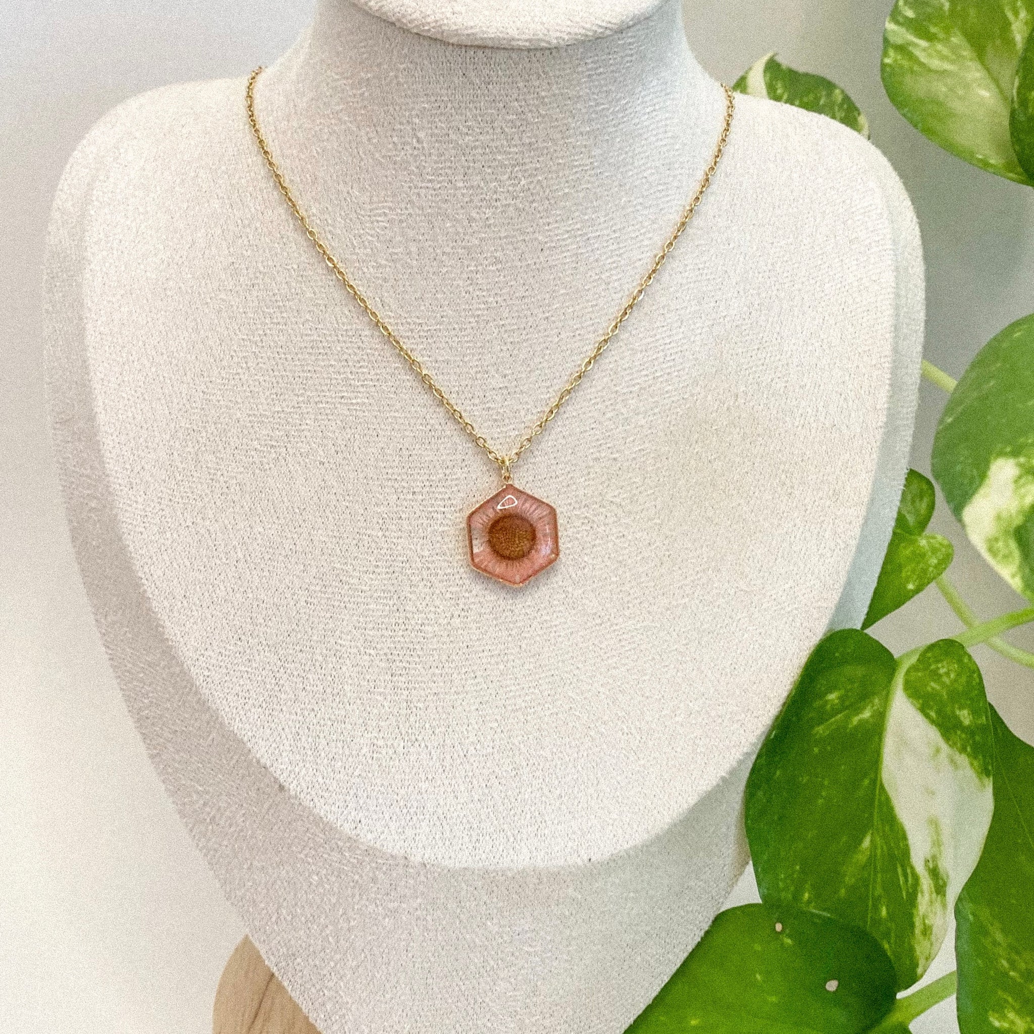 Cada collar está hecho a mano con flores reales preservadas en resina, conservando su forma, color y textura como pequeños fragmentos de naturaleza convertidos en joya. Cada pieza es delicada, liviana y pensada para acompañarte en tu día a día o en momentos especiales.