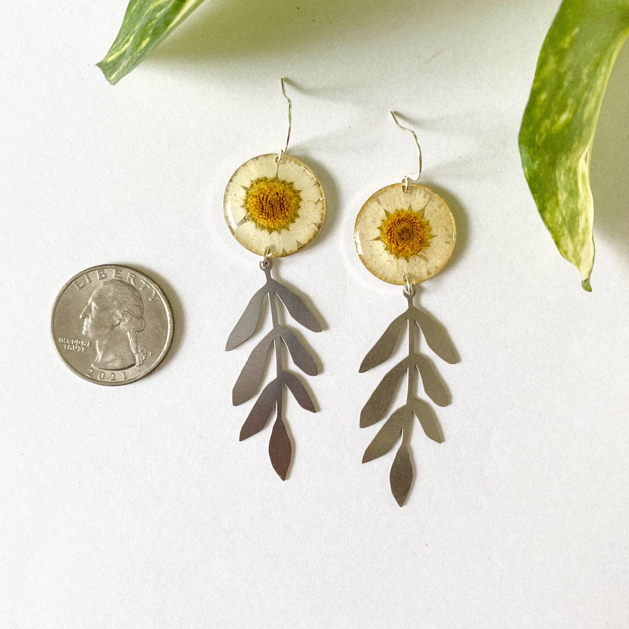 Materials: real pressed flowers , resin , stainless steel charms , 316 stainless steel fishhooks